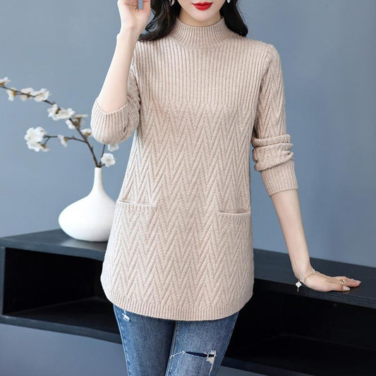 Wygodny i elegancki sweter damski o prostym wzorze, z okrągłym dekoltem