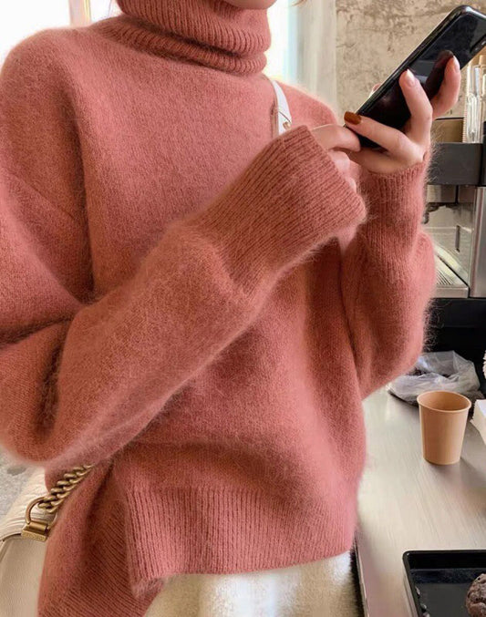Damski sweter z golfem w jednolitym kolorze, przeznaczony do noszenia na co dzień