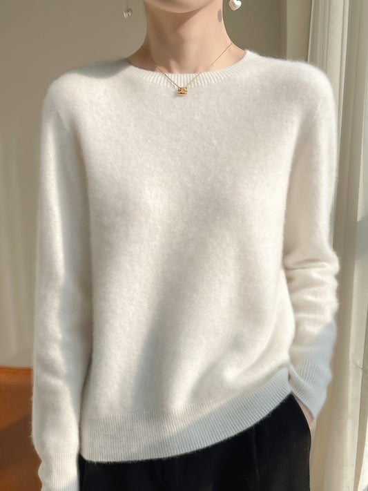 Elegancki i wygodny sweter z miękkiej wełny w jednolitym kolorze z okrągłym dekoltem, dostępny w wielu kolorach