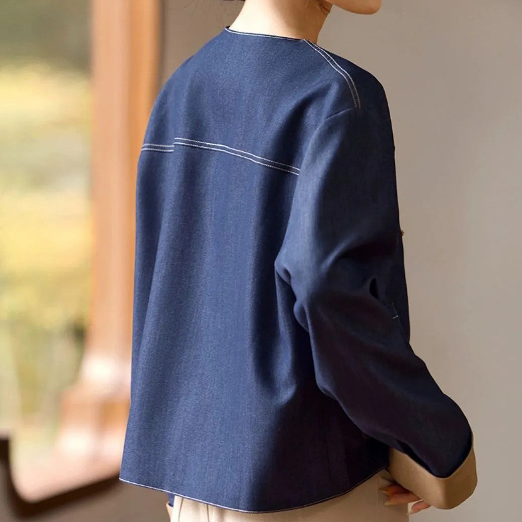 Elegancka i wygodna koszula z imitacji jeansu z brązowymi mankietami