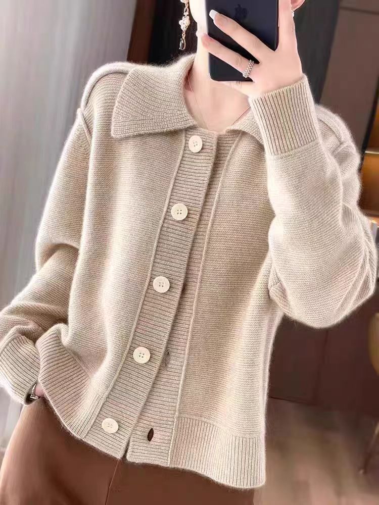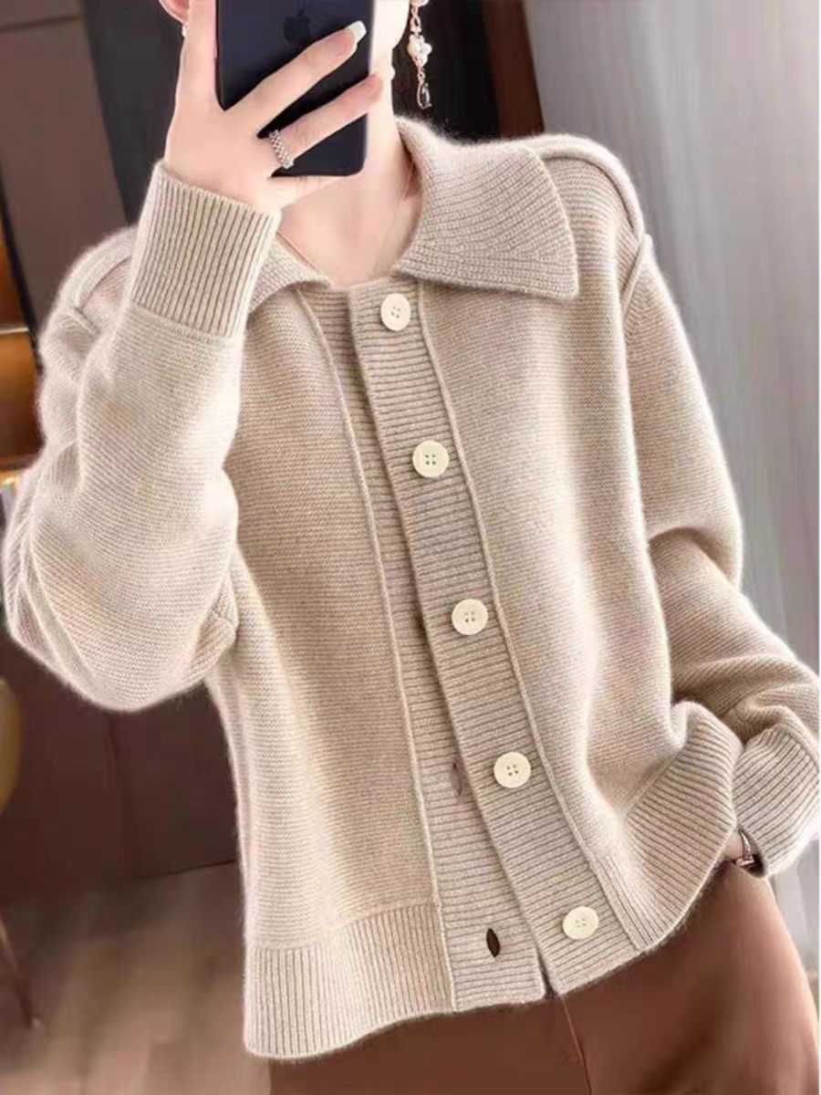 Elegancki i miękki sweter z kaszmiru z klapami i zapięciem na guziki