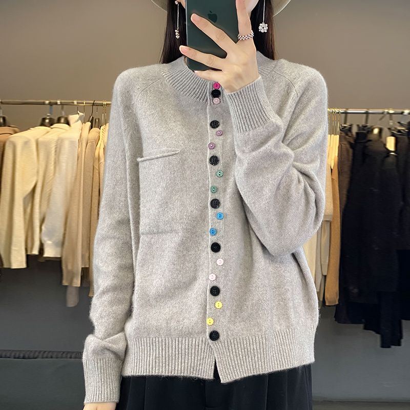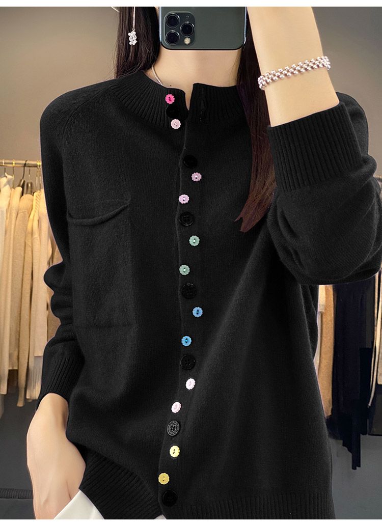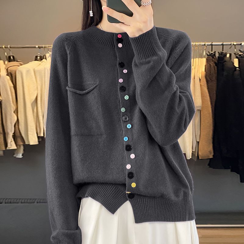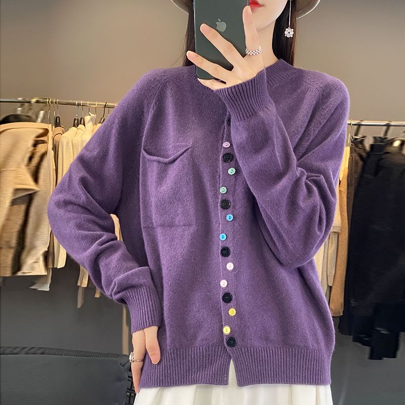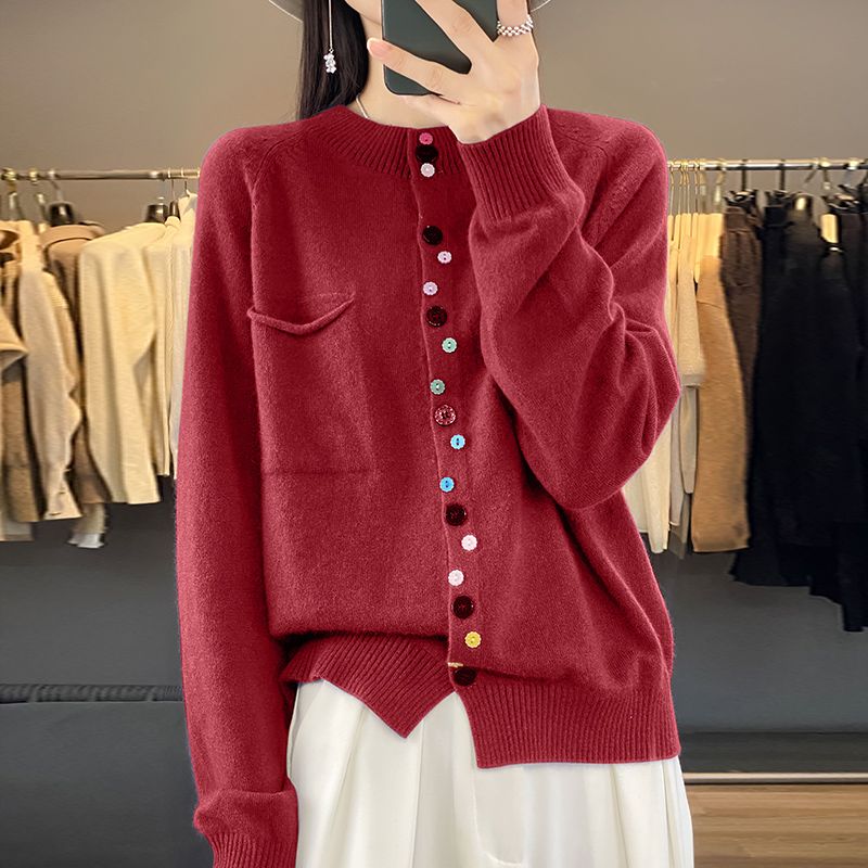 Elegancki i wygodny damski kardigan dzianinowy z kolorowym, pojedynczym guzikiem.