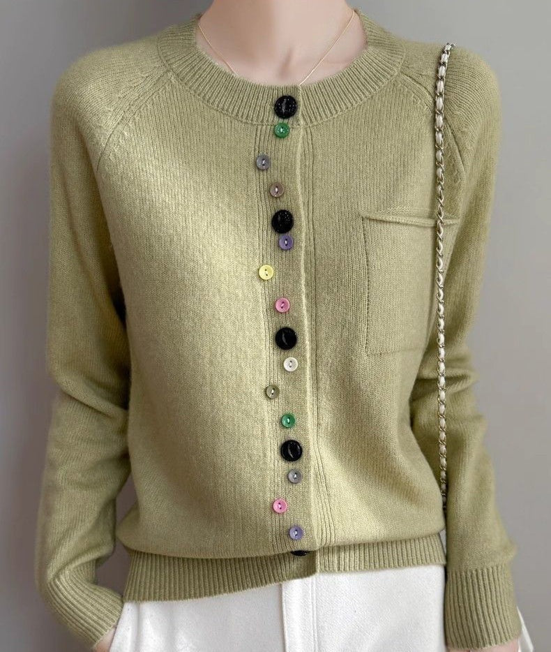 Elegancki i wygodny damski kardigan w jednolitym kolorze z kolorowymi guzikami 02