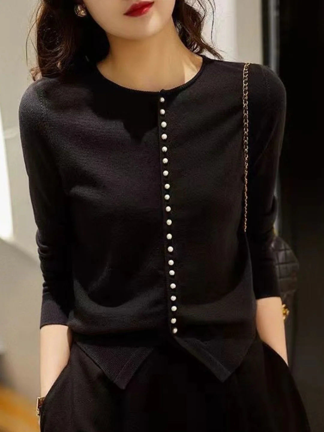 Elegancki i wygodny kardigan w stylu retro, w jednolitym kolorze, z okrągłym dekoltem, miękki jak chmurka