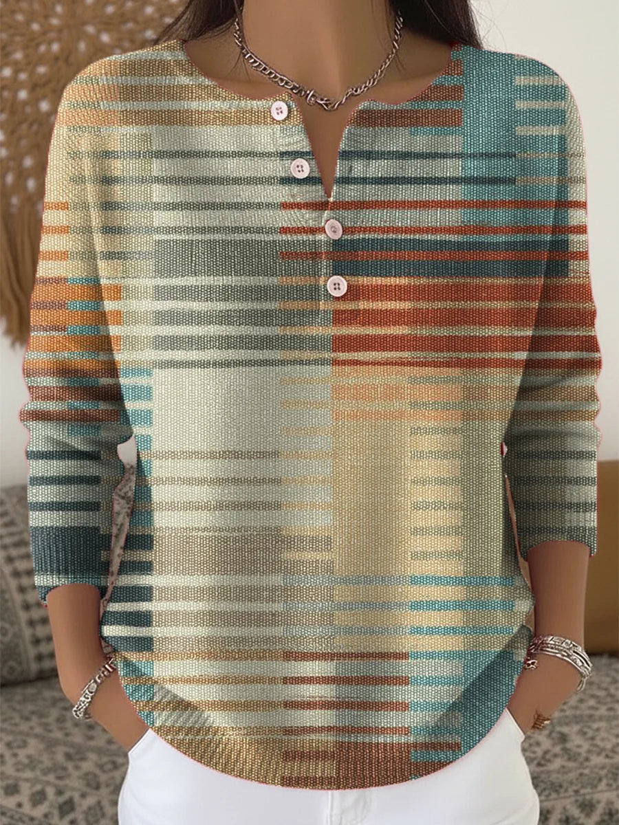 Elegancki i wygodny sweter w kolorowe paski z gradientem i półotwartym kołnierzem