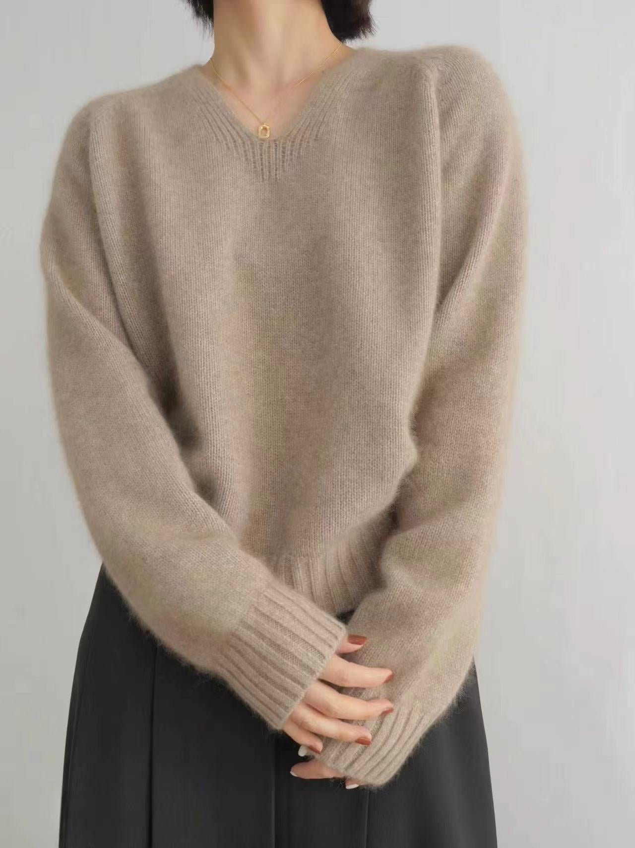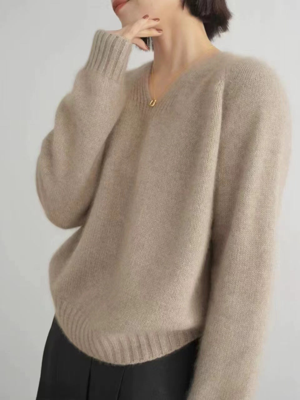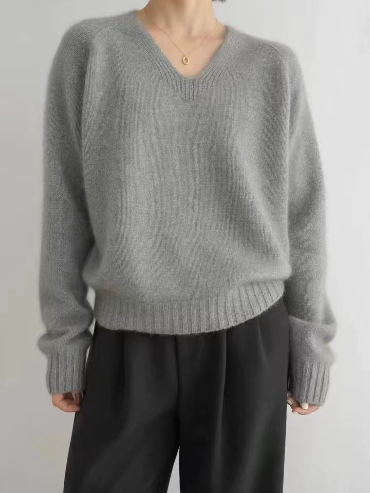 Luźny sweter w jednolitym kolorze z dekoltem w serek na jesień i zimę, miękki w dotyku, wykonany z kaszmiru, uniwersalny i wygodny