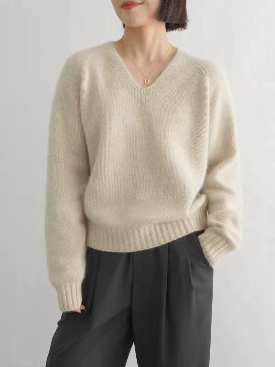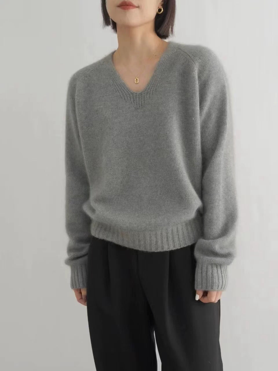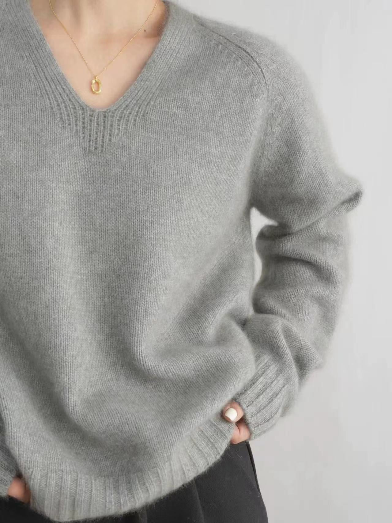 Luźny sweter w jednolitym kolorze z dekoltem w serek na jesień i zimę, miękki w dotyku, wykonany z kaszmiru, uniwersalny i wygodny