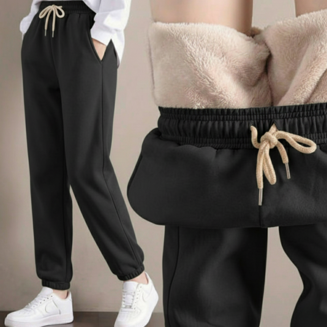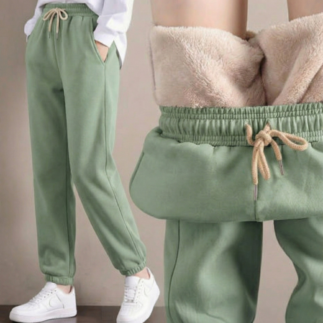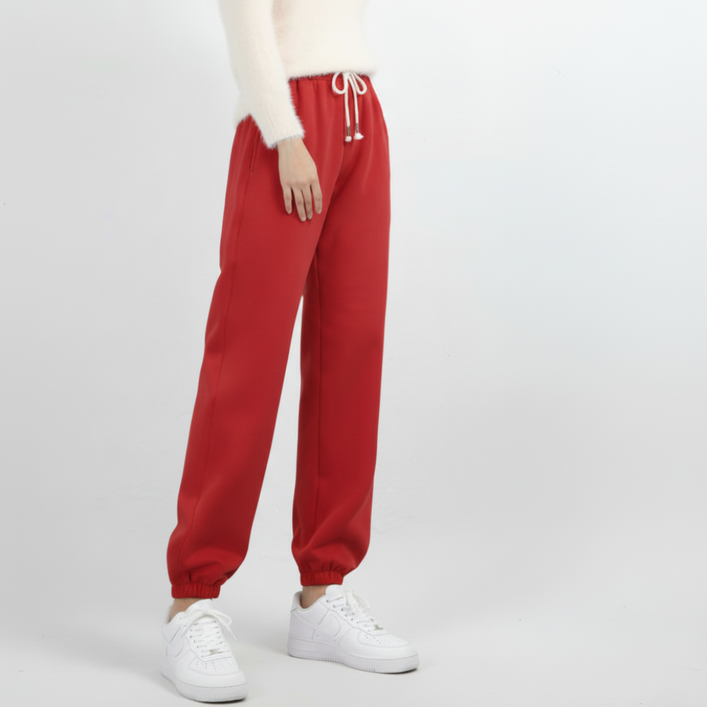 Te eleganckie i wygodne damskie spodnie dresowe o swobodnym kroju są wykonane z grubej wełnianej tkaniny i idealnie nadają się do noszenia jesienią i zimą.